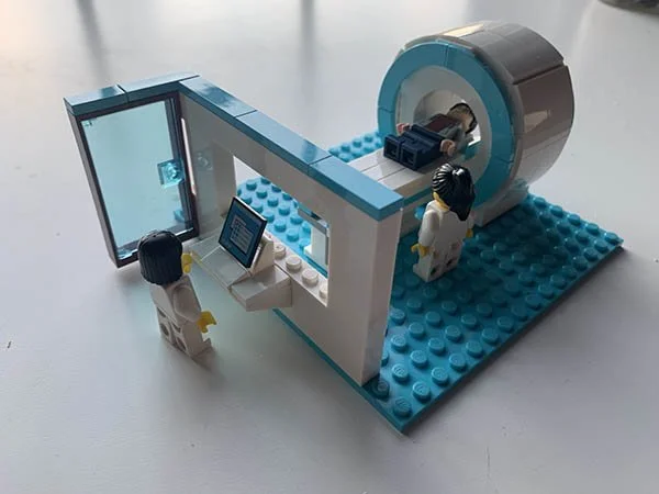 I am collecting and making small assemblage pieces for the exhibit, including a Lego model designed to help kids be less afraid of MRI procedures.