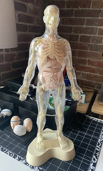 This Visible Man model is a version of one my father assembled when he was young. The original was released in 1959. My father had been interested in going to medical school before he eventually became a chemistry teacher and environmental engineer. I remember this model sitting on his shelf in its box; something that looked like a toy, but that we weren’t allowed to play with.